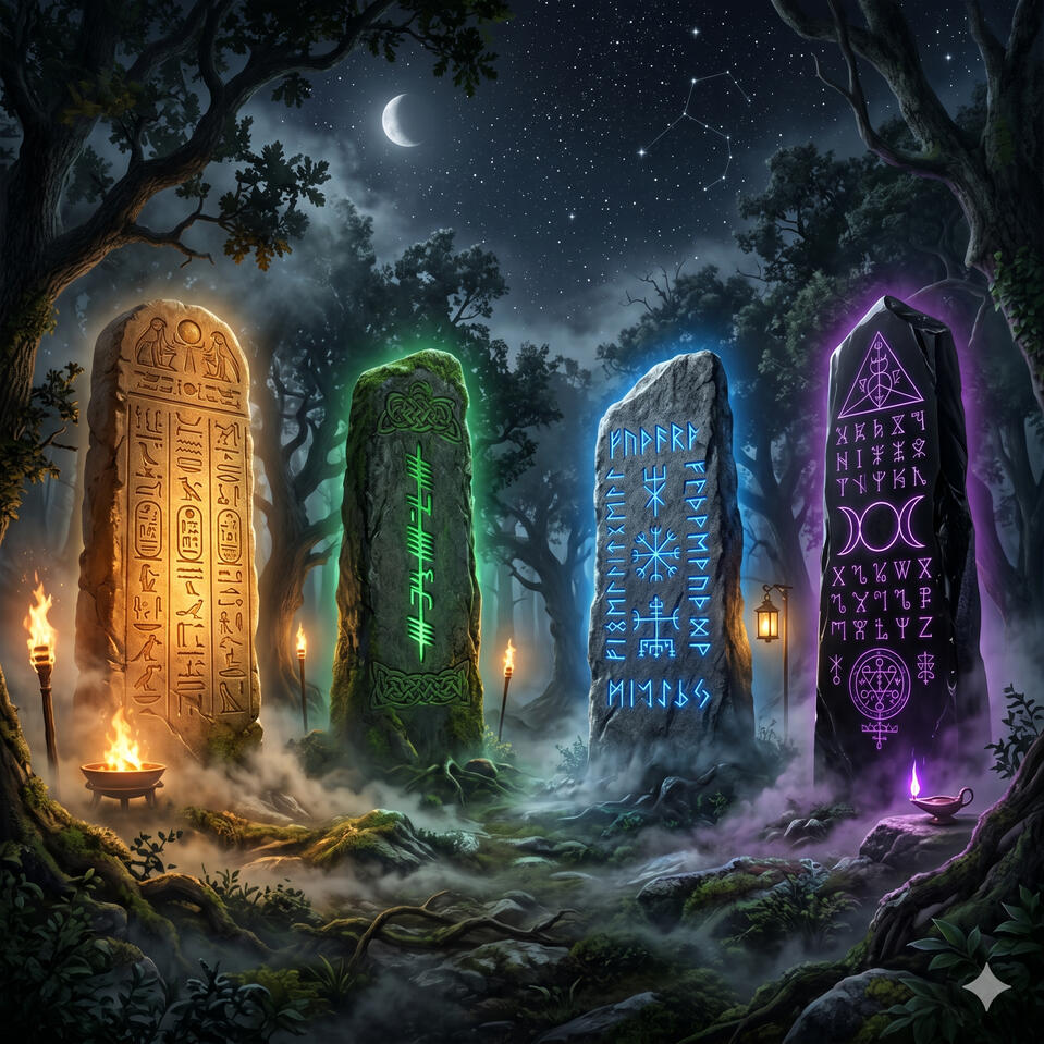 Ghob es el soberano de los elementales de tierra en la tradición wicca. Gobierna el punto Norte del círculo mágico y se le invoca al abrir el cuarto correspondiente en los rituales. Su energía es la de la estabilidad, la prosperidad material, el cuerpo físico y la conexión con los ancestros. Trabajar con Ghob es anclar la magia en el mundo tangible.