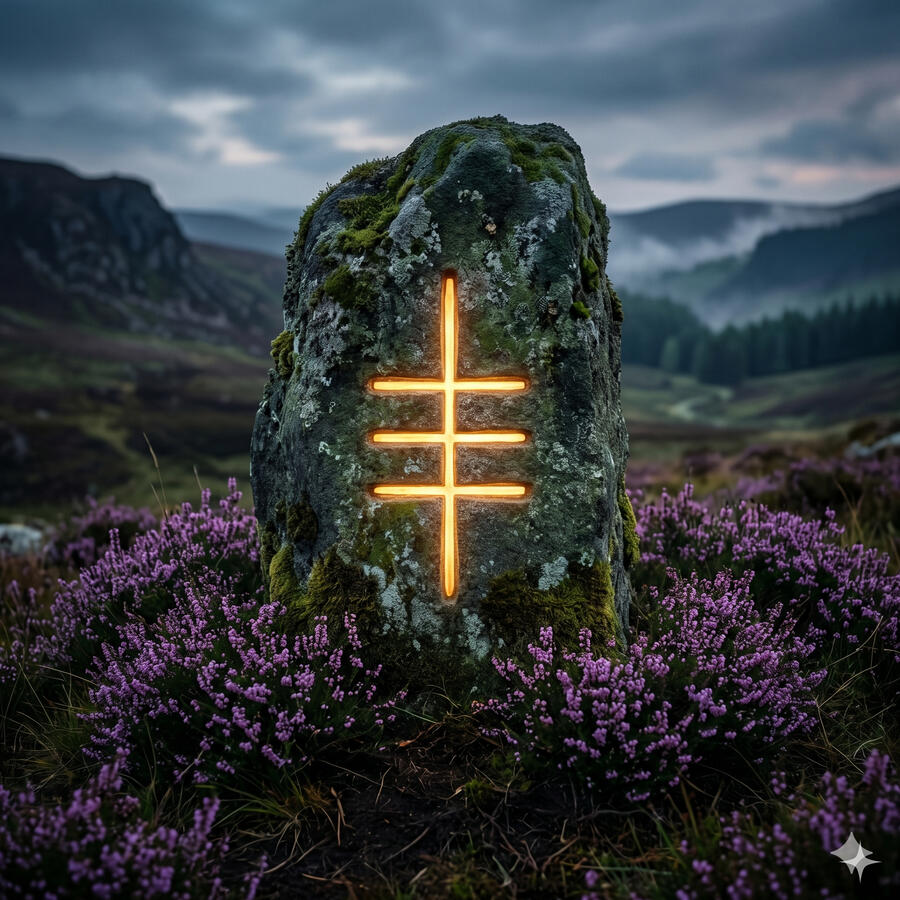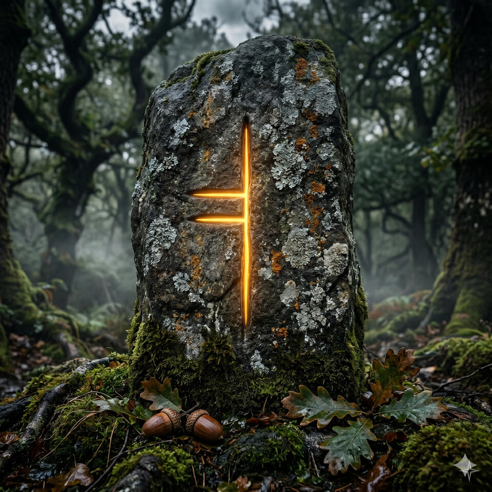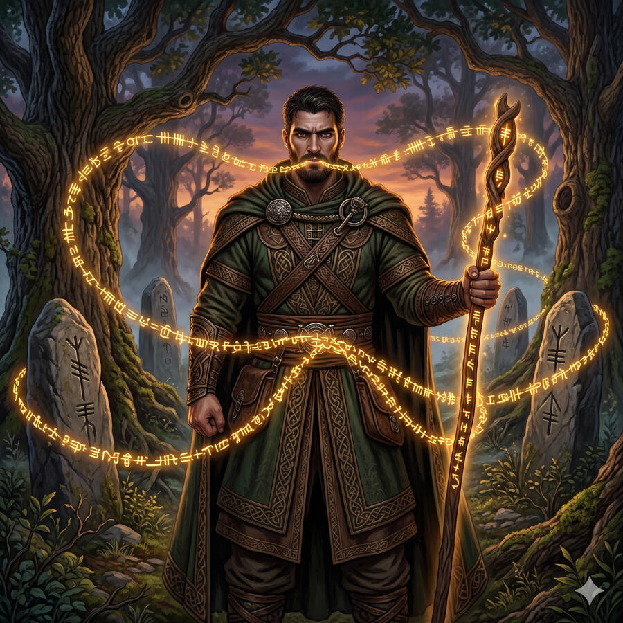 Ogma es el dios de la elocuencia, la escritura sagrada y la fuerza que viene del conocimiento. Se le atribuye la creación del alfabeto ogham — el sistema de escritura celta tallado en piedra y madera cuyas letras son también portales a significados ocultos. Es un dios guerrero pero su arma más temible no es la espada sino la palabra: se dice que con su elocuencia podía encadenar a los hombres y arrastrarlos consigo a donde él quisiera. La sabiduría bien expresada es, para él, la mayor forma de poder.