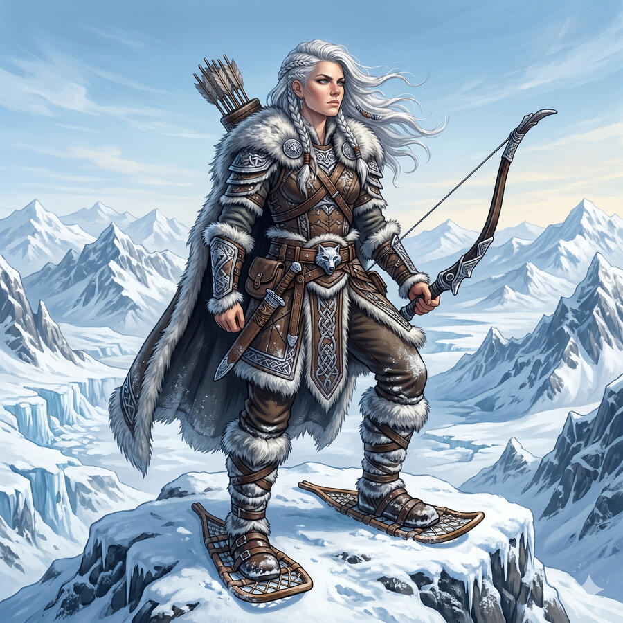 Skadi llegó a Asgard con armas para vengar la muerte de su padre. Los dioses, en lugar de combatirla, le ofrecieron matrimonio con uno de ellos — pero debía elegir al esposo viendo solo sus pies. Eligió los más hermosos pensando que serían los de Baldr, pero eran los de Njörd, el dios del mar. El matrimonio fracasó: él no podía vivir sin el sonido de las olas, ella no podía vivir lejos de las montañas nevadas. Se separaron en paz. Skadi volvió a sus montañas con esquís y arco, y gobernó el invierno como siempre había querido.